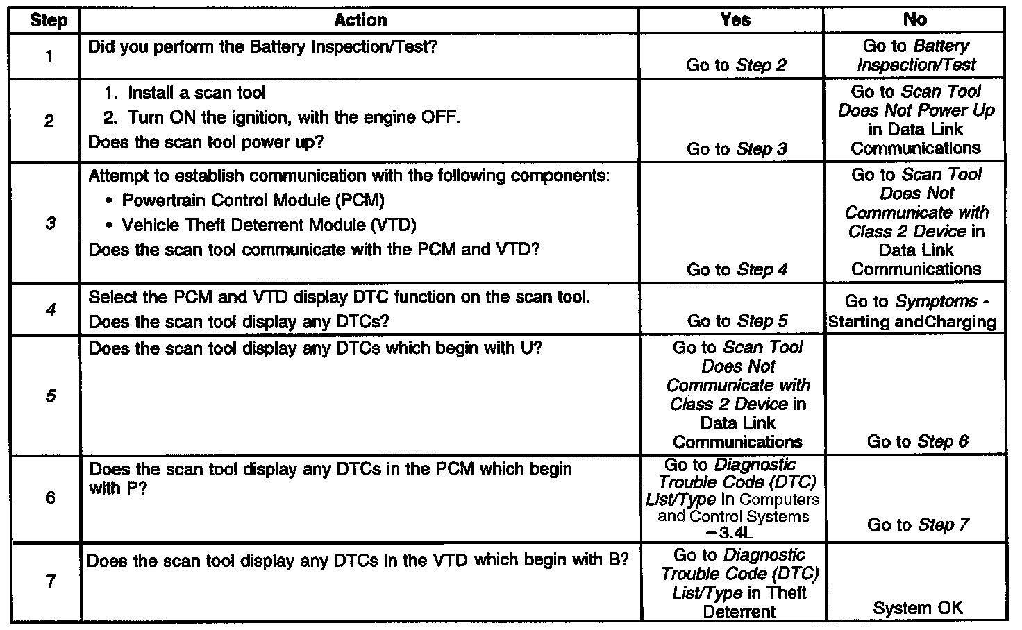 3. Lack of communication may be due to a partial malfunction of the class 2 serial data circuit or due to a total malfunction of the class 2 serial data circuit. The specified procedure will determine the particular condition.