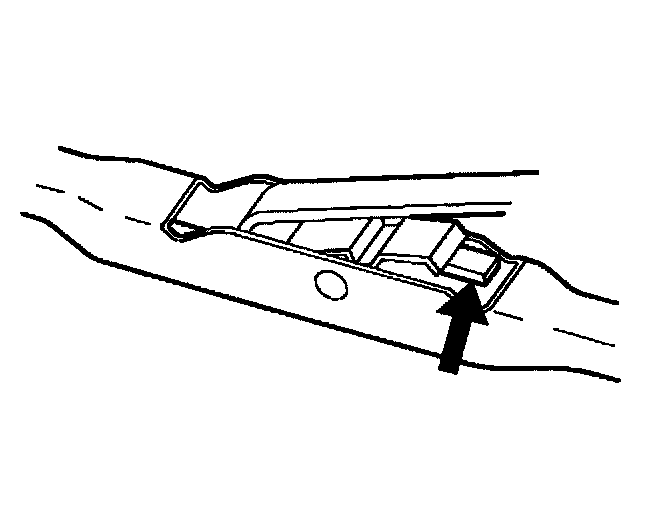 4. Push in the button of the wiper blade clip and remove the wiper blade from the inside radius of the wiper arm.