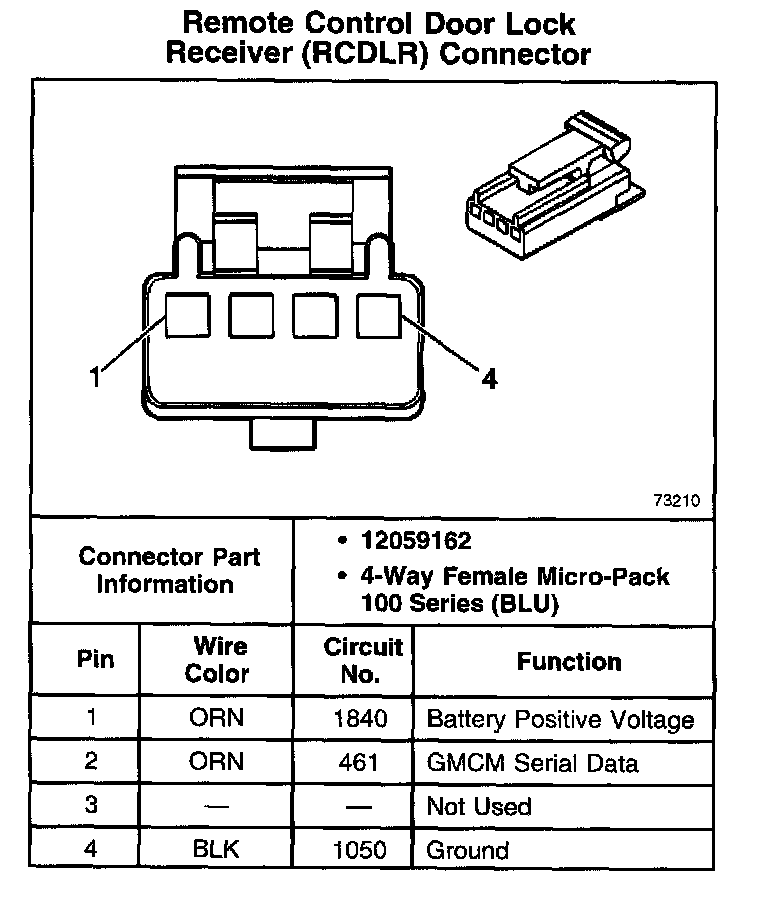 Remote Control Door Lock Receiver (RCDLR) Connector: