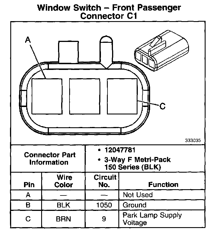 Window Switch - Front Passenger Connector C1: