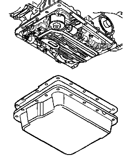 15. Clean the transmission case and the oil pan gasket surfaces with solvent, and air dry. You must remove all traces of the old gasket material.