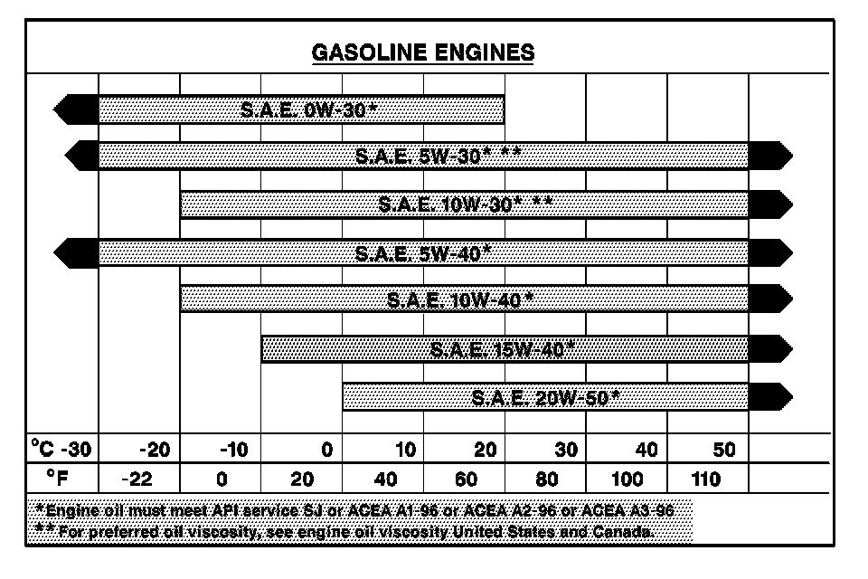 Important: If your vehicle is operated in an area where the temperature falls below -29°C (-20°F), consider using a SAE 5W-30 synthetic oil or a SAE 0W-30. Both will provide easier cold starting and better protection for the engine at extremely low temperatures.