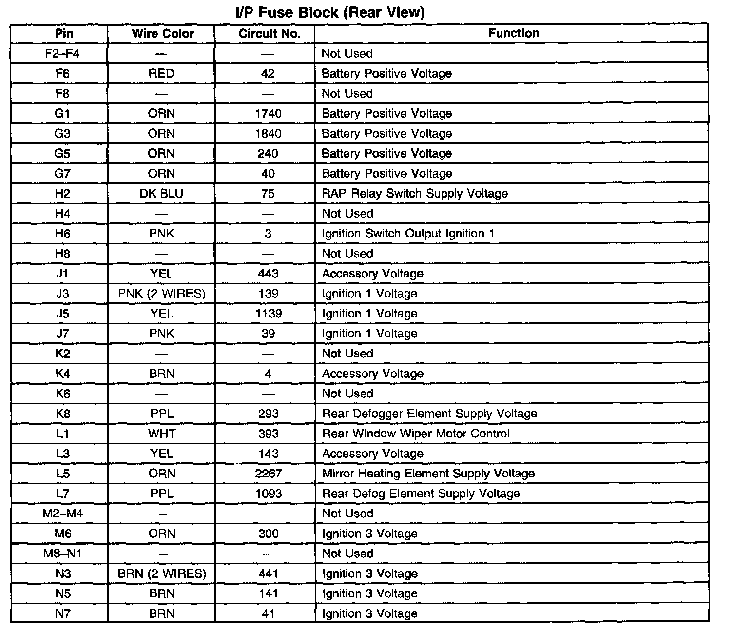 I/P Fuse Block (Rear View) (Part 2 Of 2):