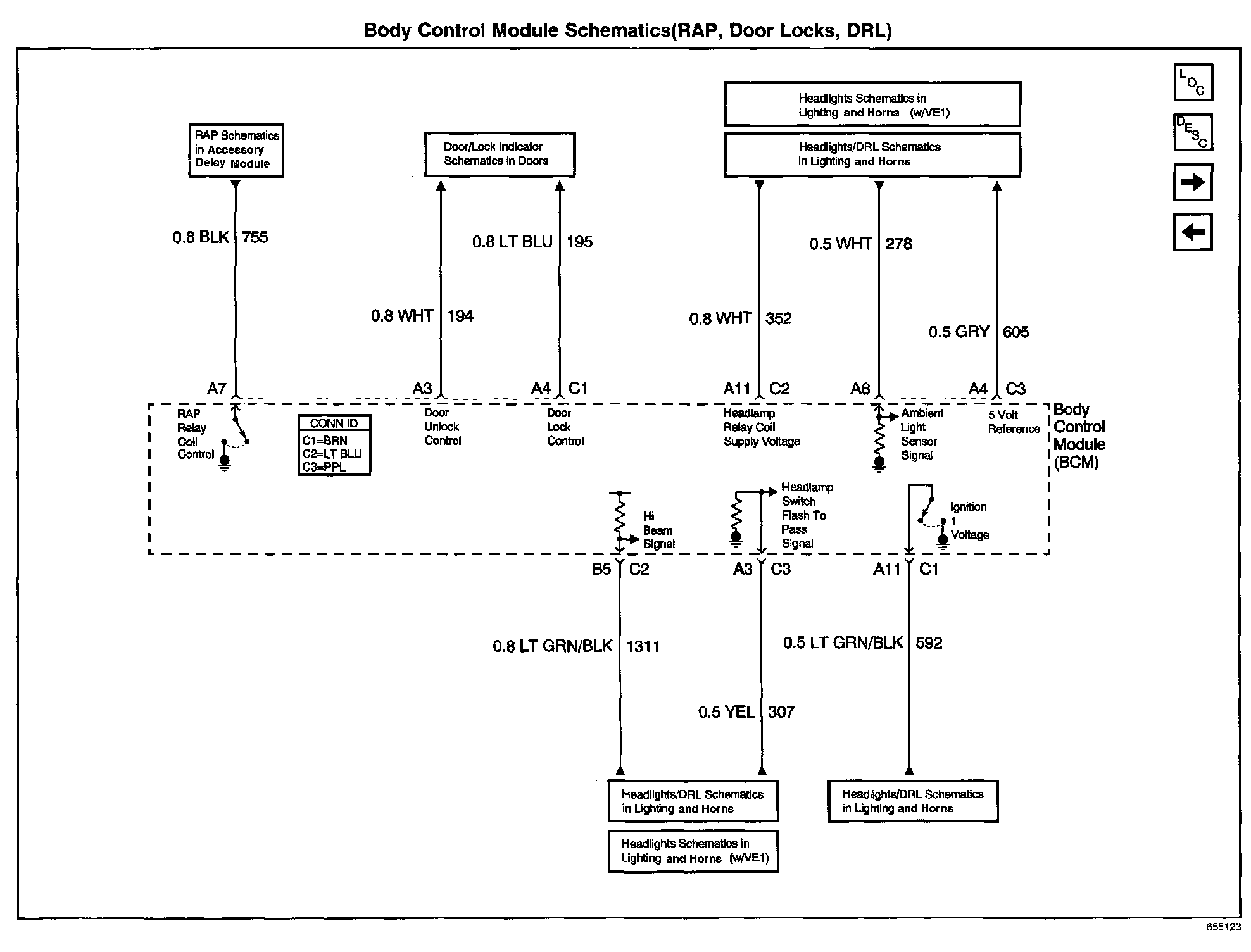 Body Control Module Schematics: RAP, Door Locks, DRL: