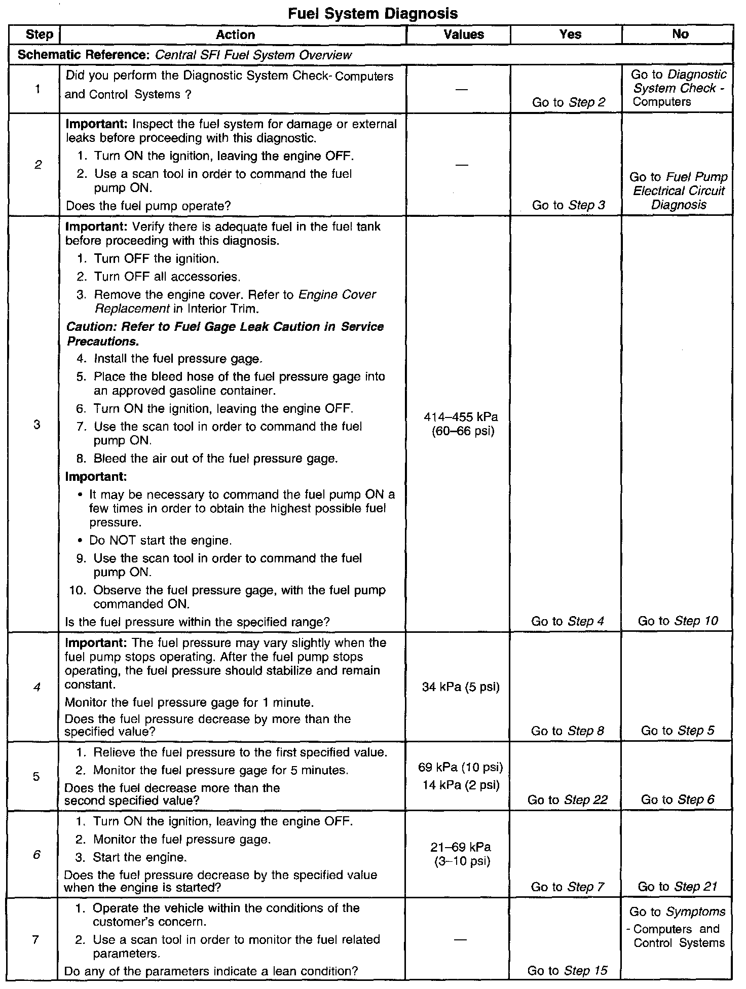 4. This step tests for an internal fuel leak. If the fuel pressure decreases during this test an internal loss of pressure is indicated.