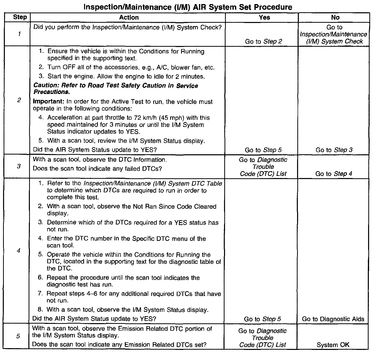 5. The I/M System Status only reports on whether or not a diagnostic has run, not what the outcome of the test was. If any Emission Related DTC sets after the tests are complete, the DTC will require diagnosis.