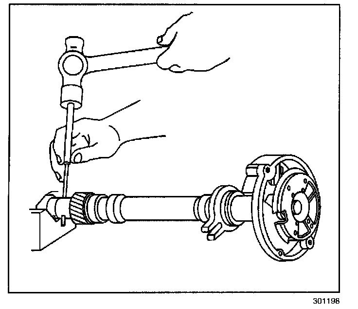 14. Support the distributor drive gear in a V-block or similar fixture.