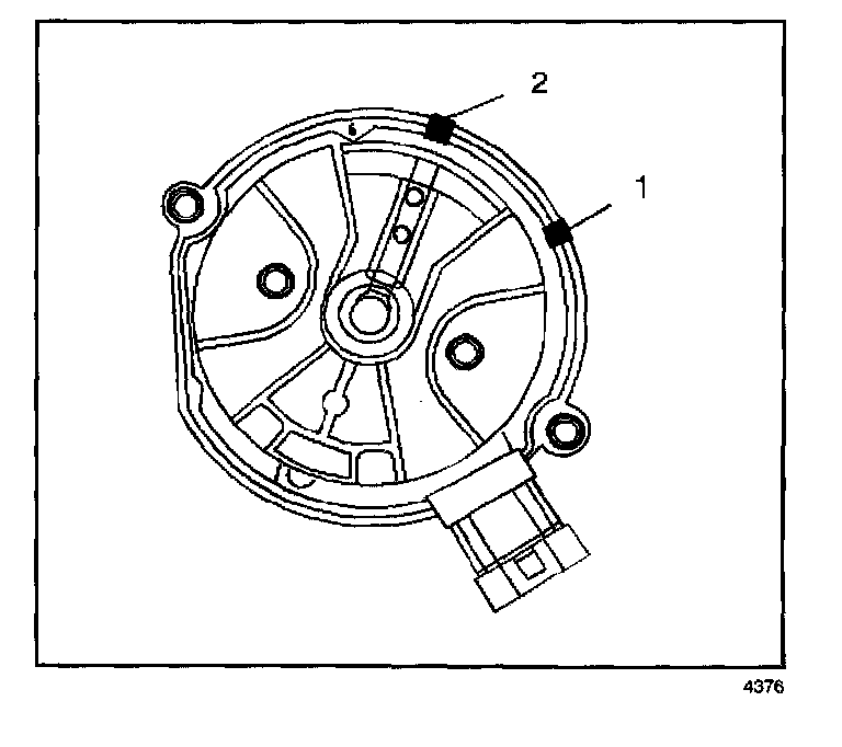 2. marks on the new distributor housing in the same location as the marks on the original housing.
