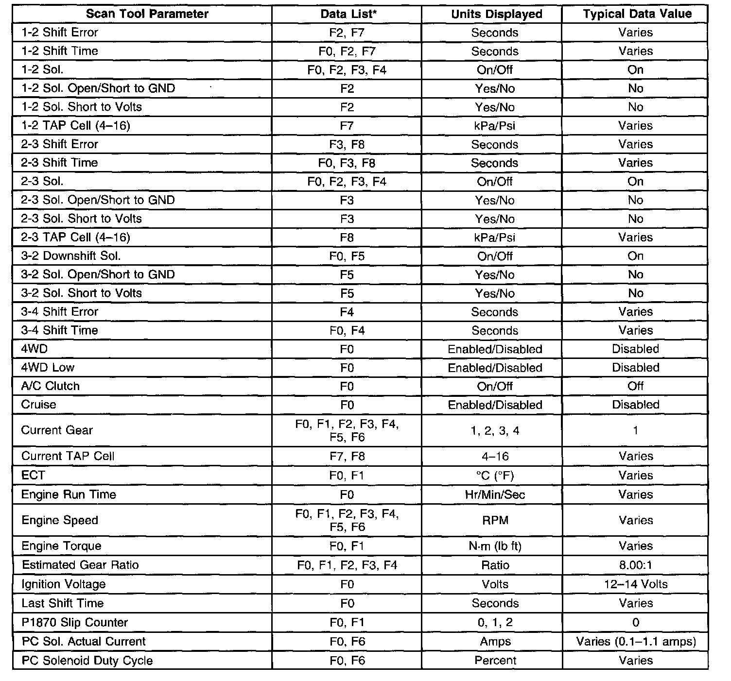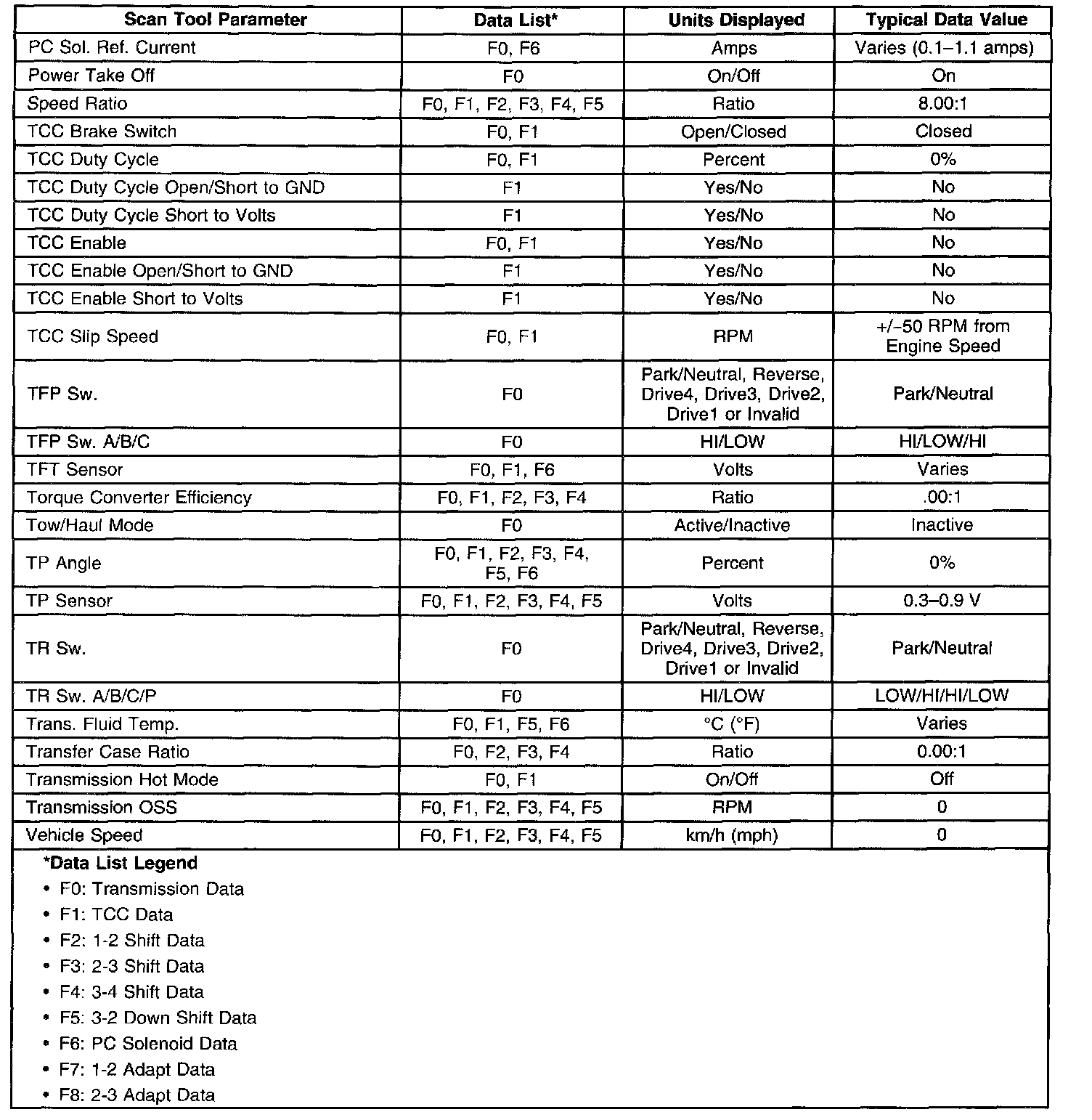 Transmission Scan Tool Data ListPart 1 of 2