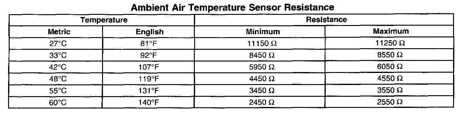 Ambient Air Temperature Sensor Resistance: