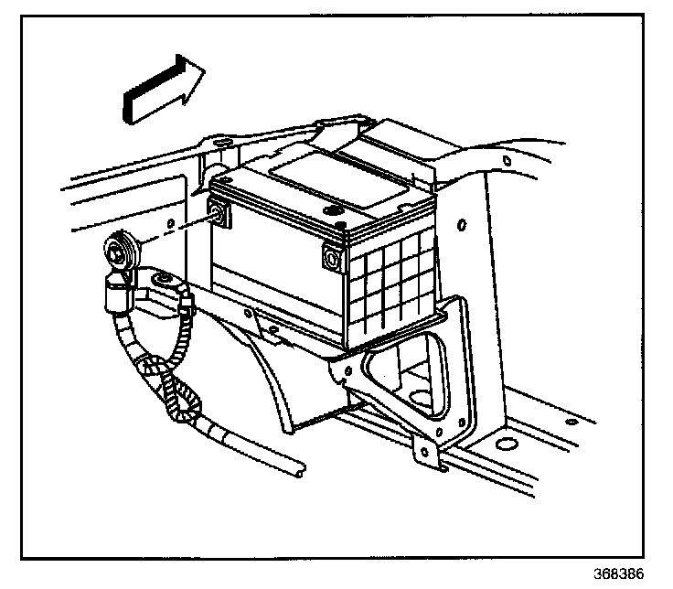 3. Remove the battery ground (negative) cable and bolt from the battery 4.3L.