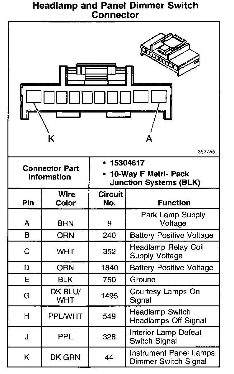 Headlamp And Panel Dimmer Switch Connector: