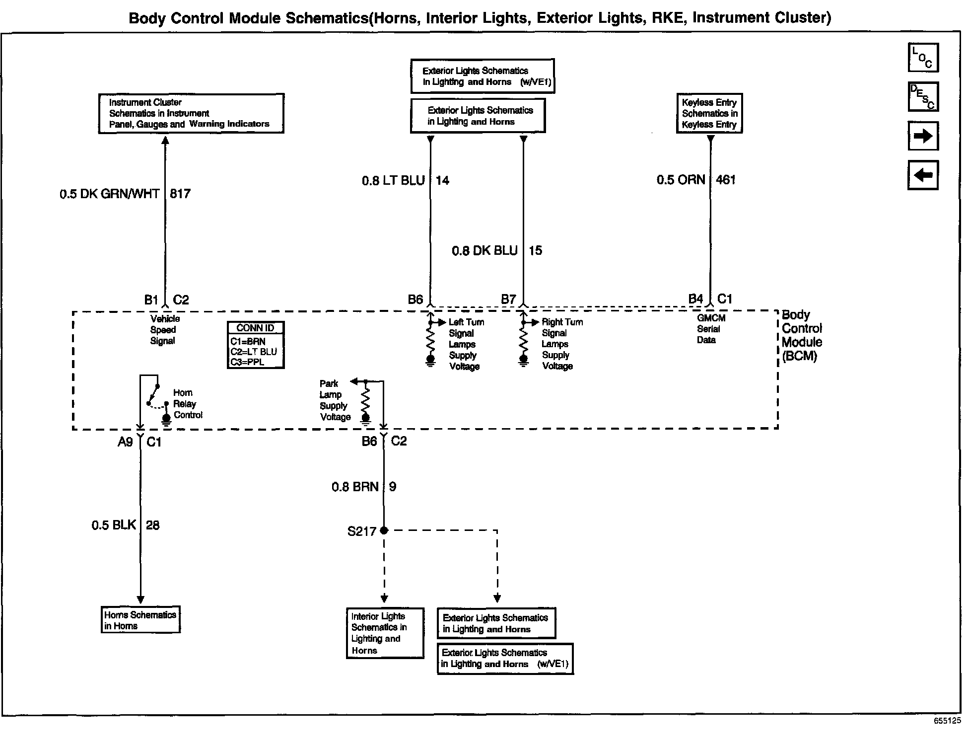 Body Control Module Schematics: Horns, Interior Lights, Exterior Lights, RKE, Instrument Cluster: