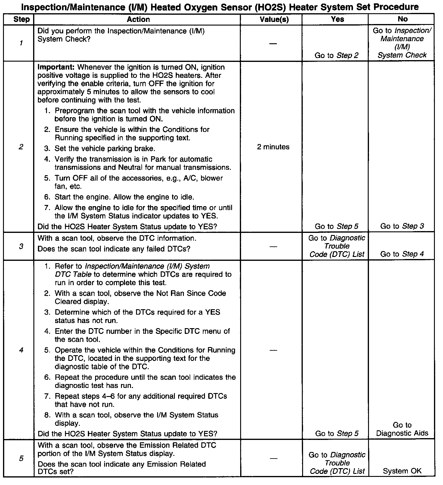 I/M Heated Oxygen Sensor (HO2S) Heater System Set Procedure
