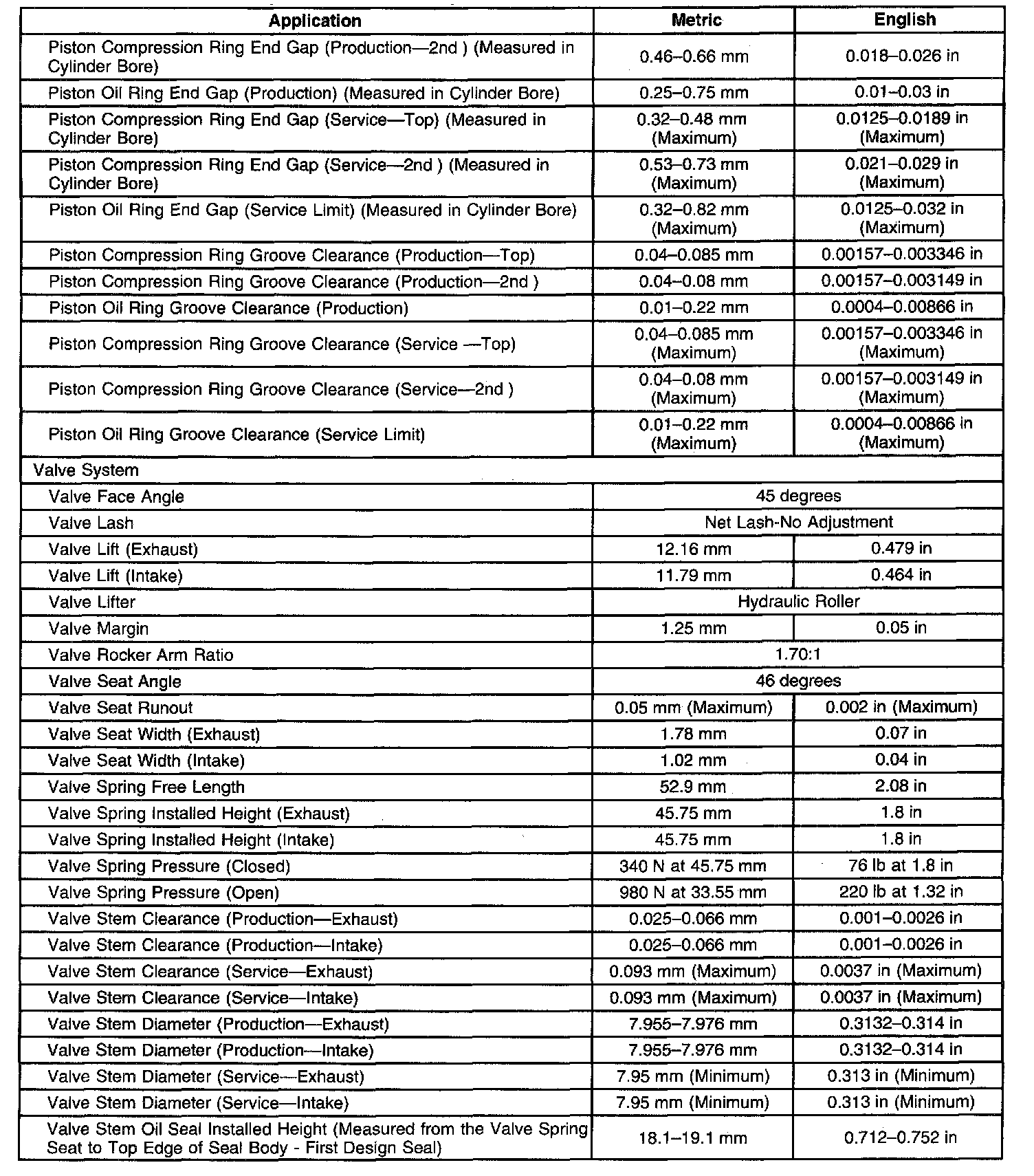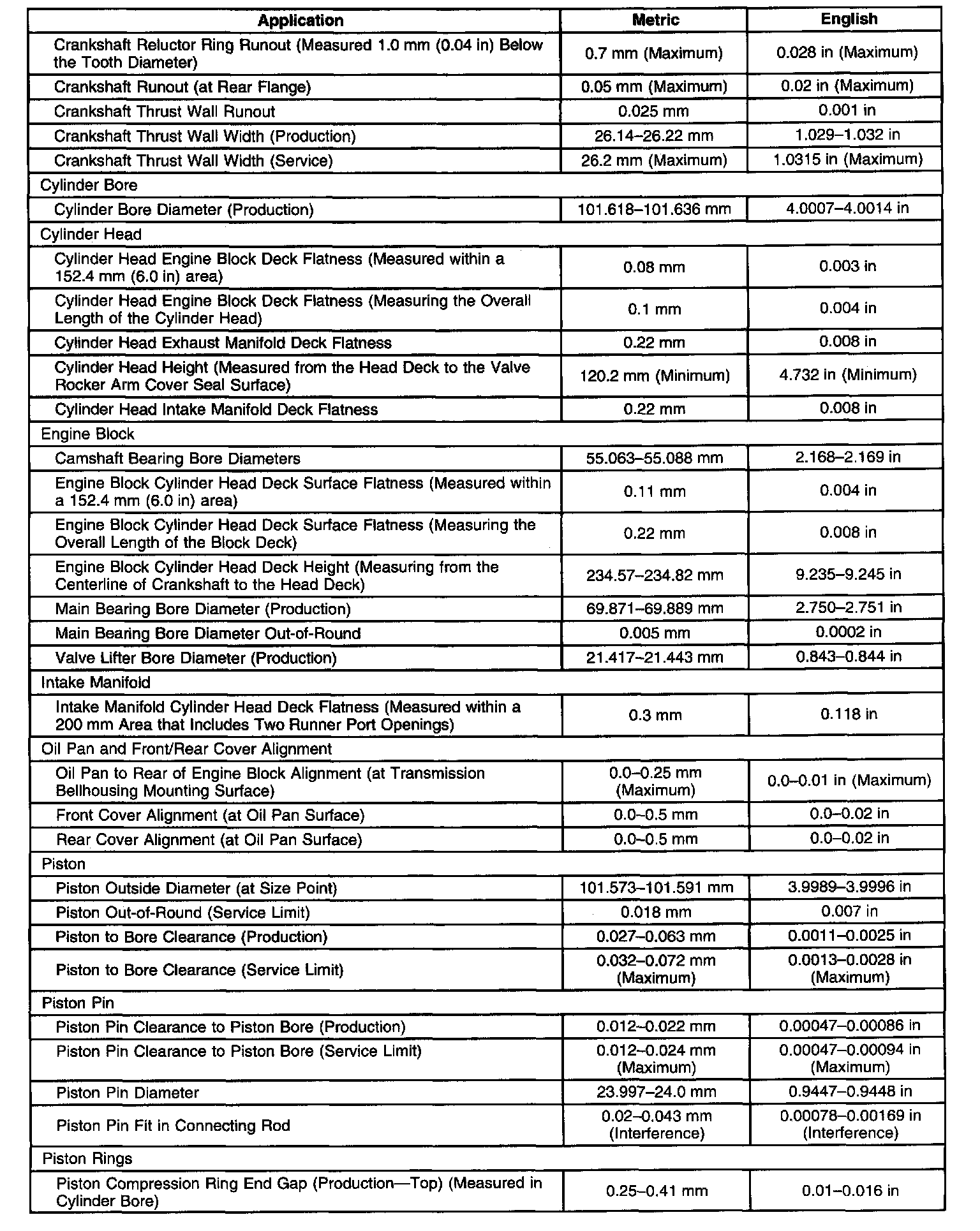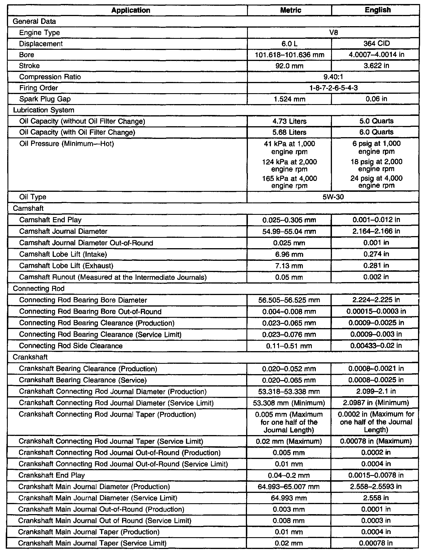 Engine Mechanical Specifications