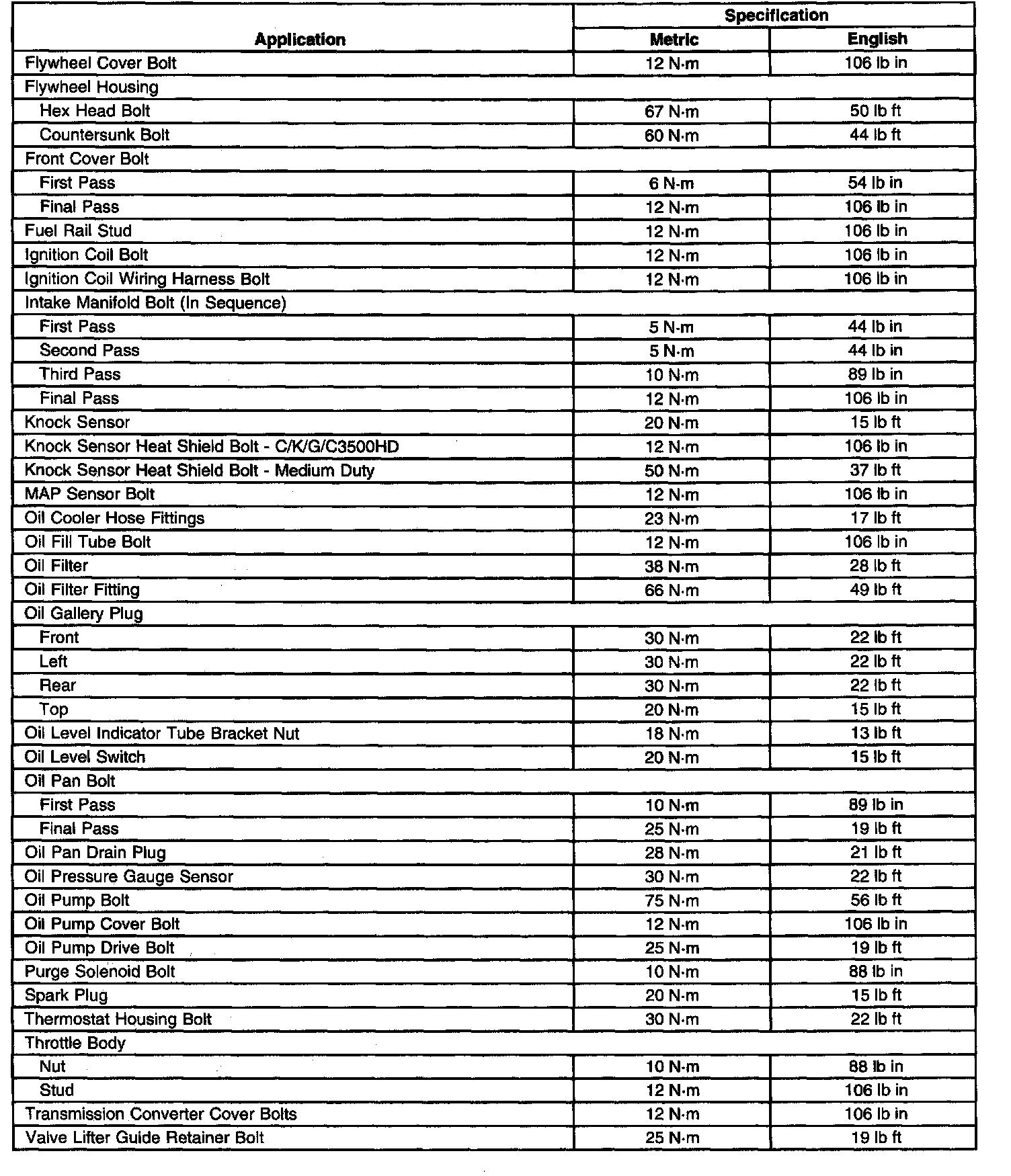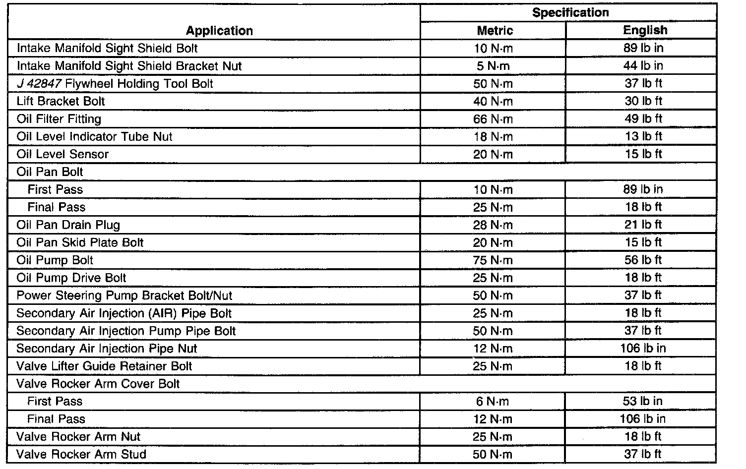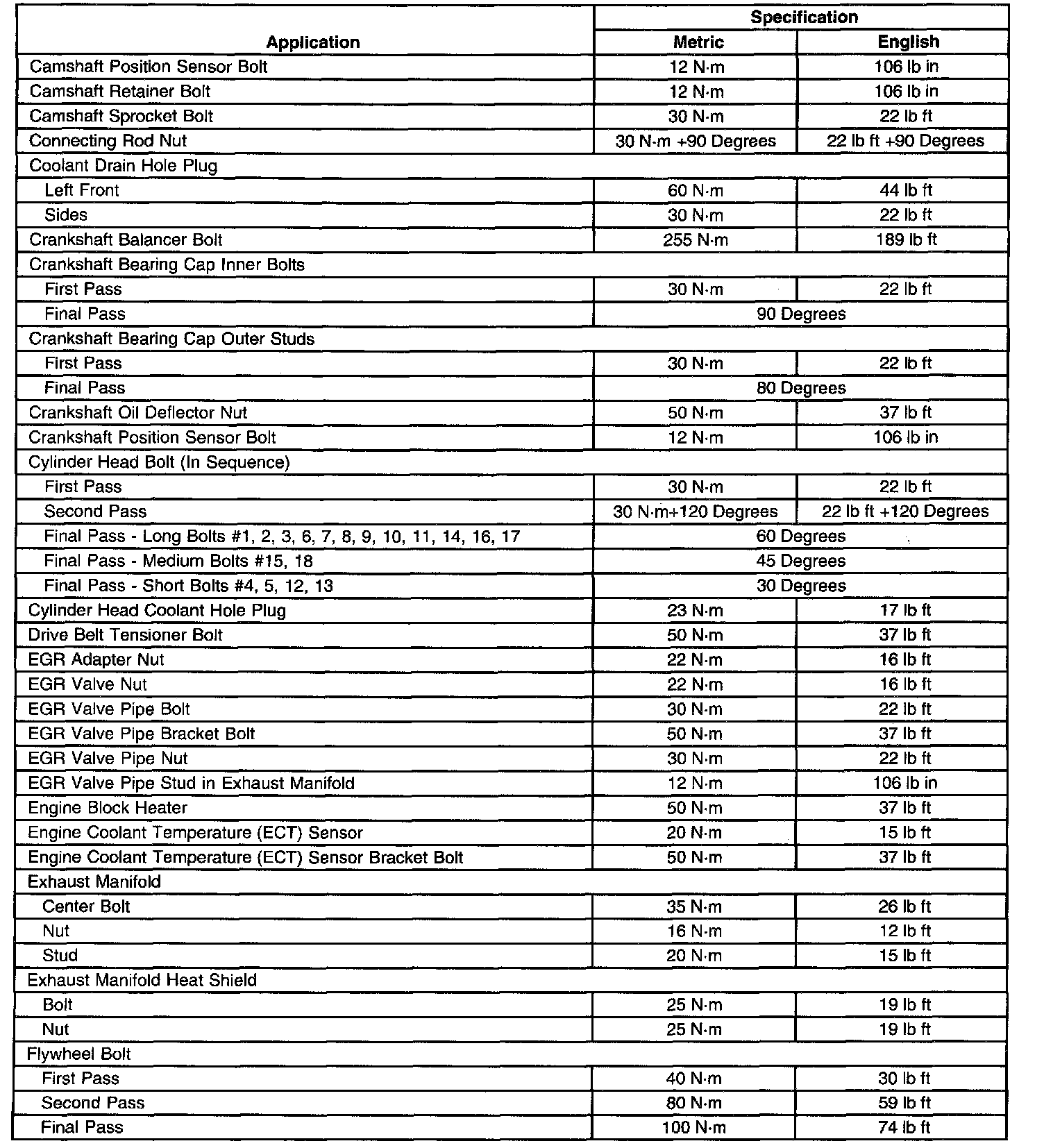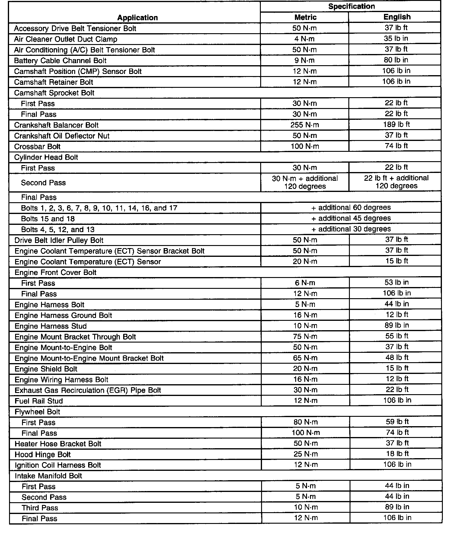 Fastener Tightening Specifications