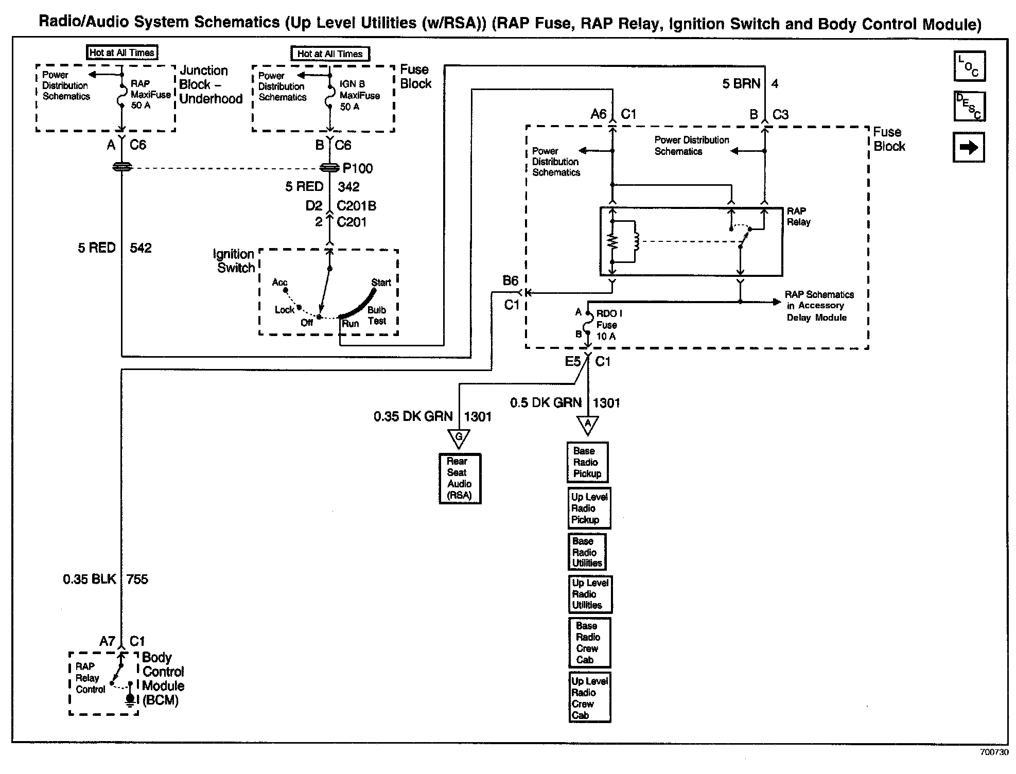 Radio/Audio System Schematics: Up Level Utilities (W/RSA) (RAP Fuse, RAP Relay, Ignition Switch And Body Control Module):
