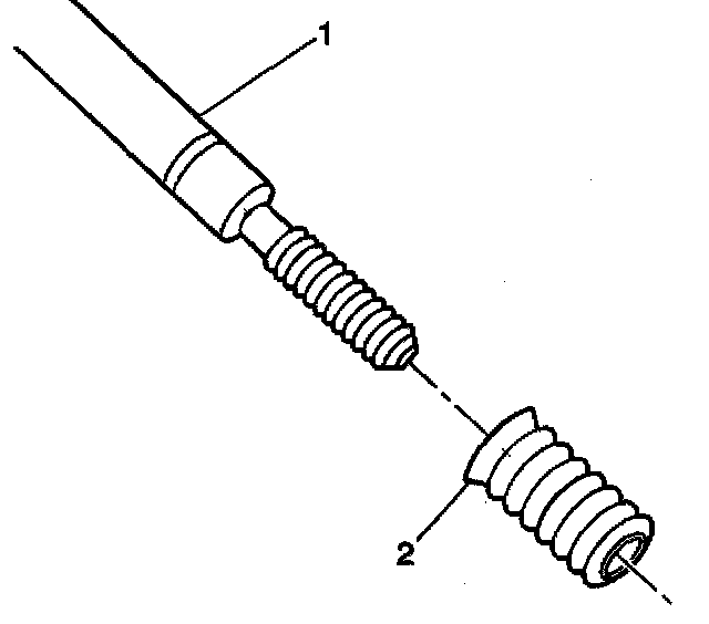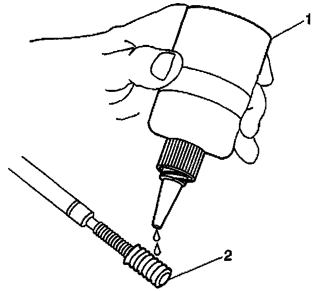 11. Apply threadlock Loctite 277, J 42385-109 (1), or equivalent to the insert OD threads (2).