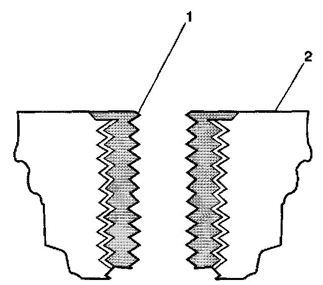 1. Drill out the threads of the damaged hole (1).