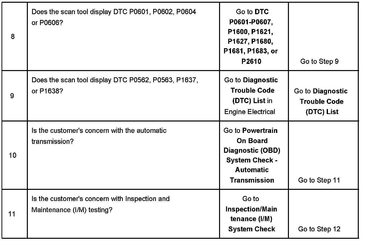11. This step is for areas that have inspection and maintenance testing procedures for emissions testing. Use this step if the testing facility found one or more I/M system statuses that did not set.