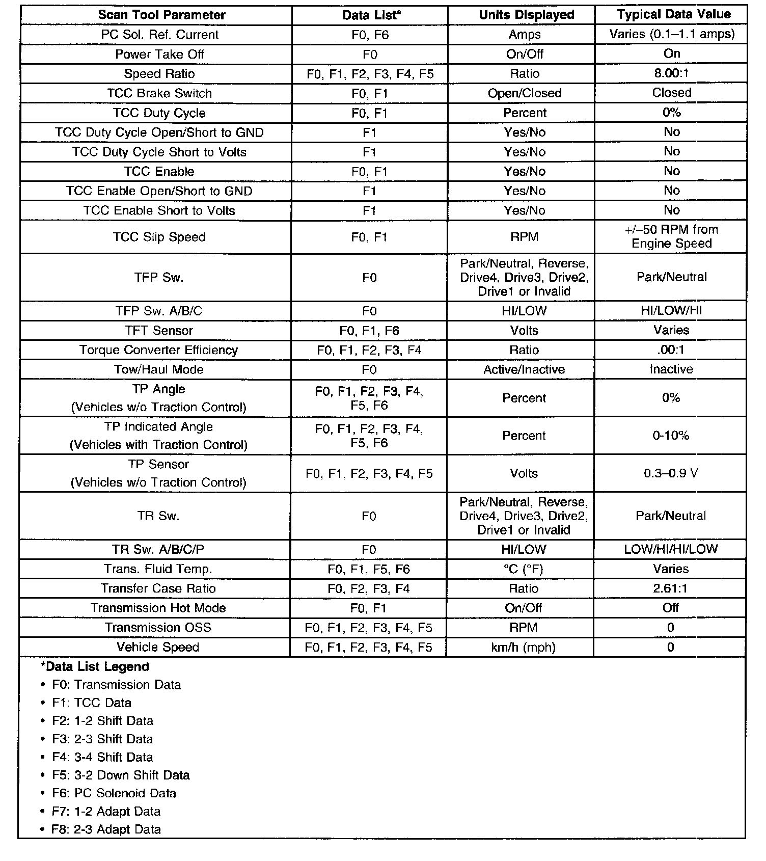 Transmission Scan Tool Data List