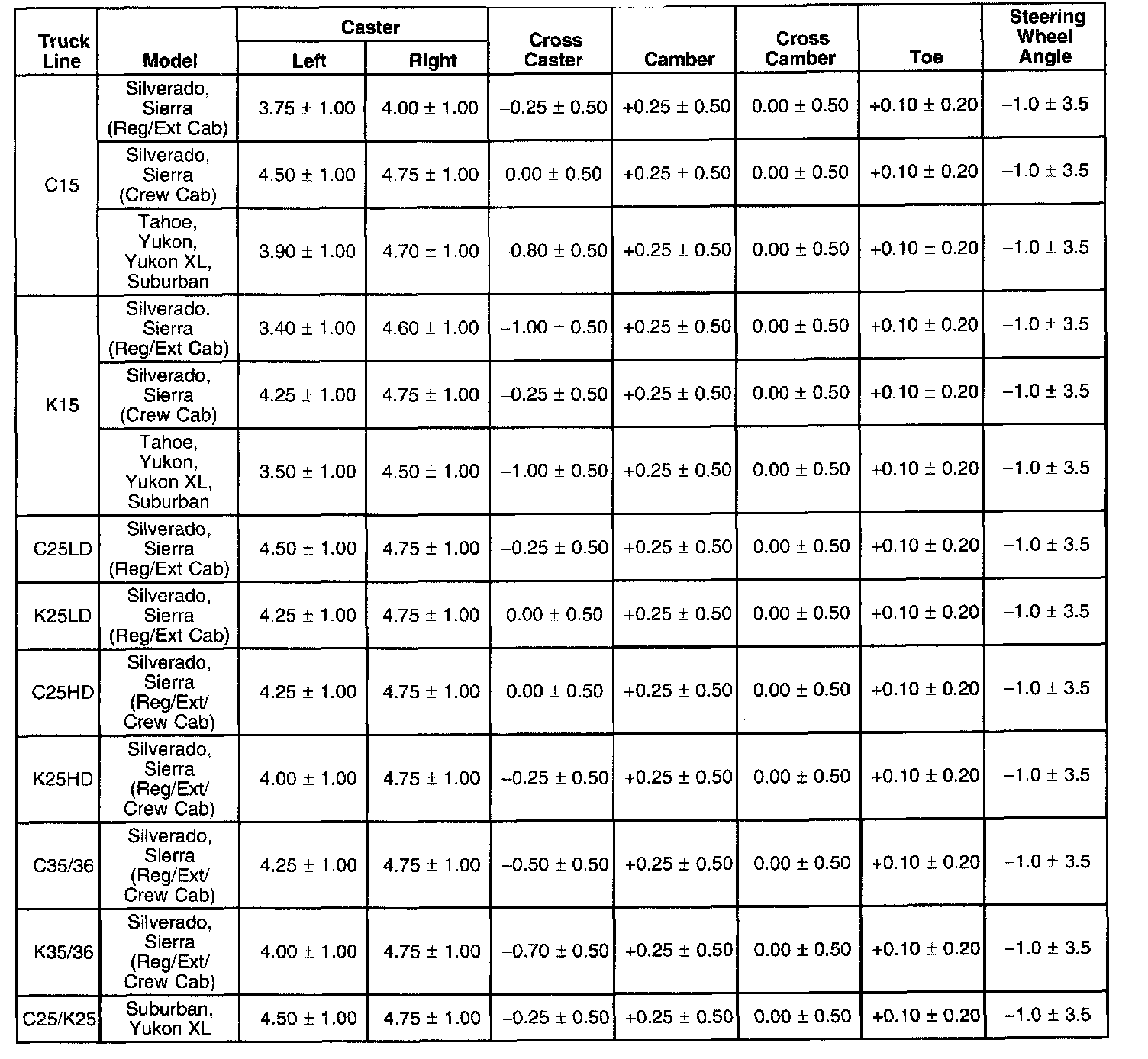 Wheel Alignment Specifications