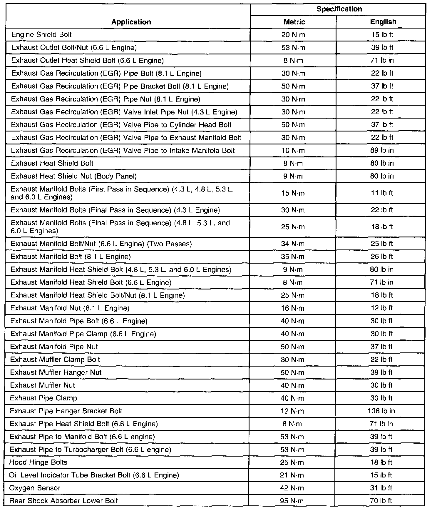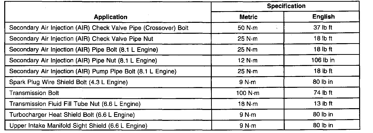 Fastener Tightening Specifications