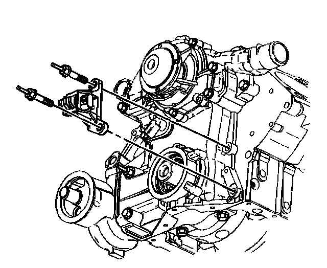 Tighten the front cover bolts (1) and stud (2) to 20 Nm (15 lb ft). Use the J 36660-A to torque the front cover bolts (1) and stud (2) an additional 40 degrees.