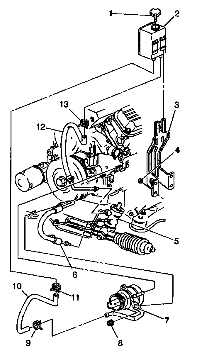 - The power steering return hose (12).