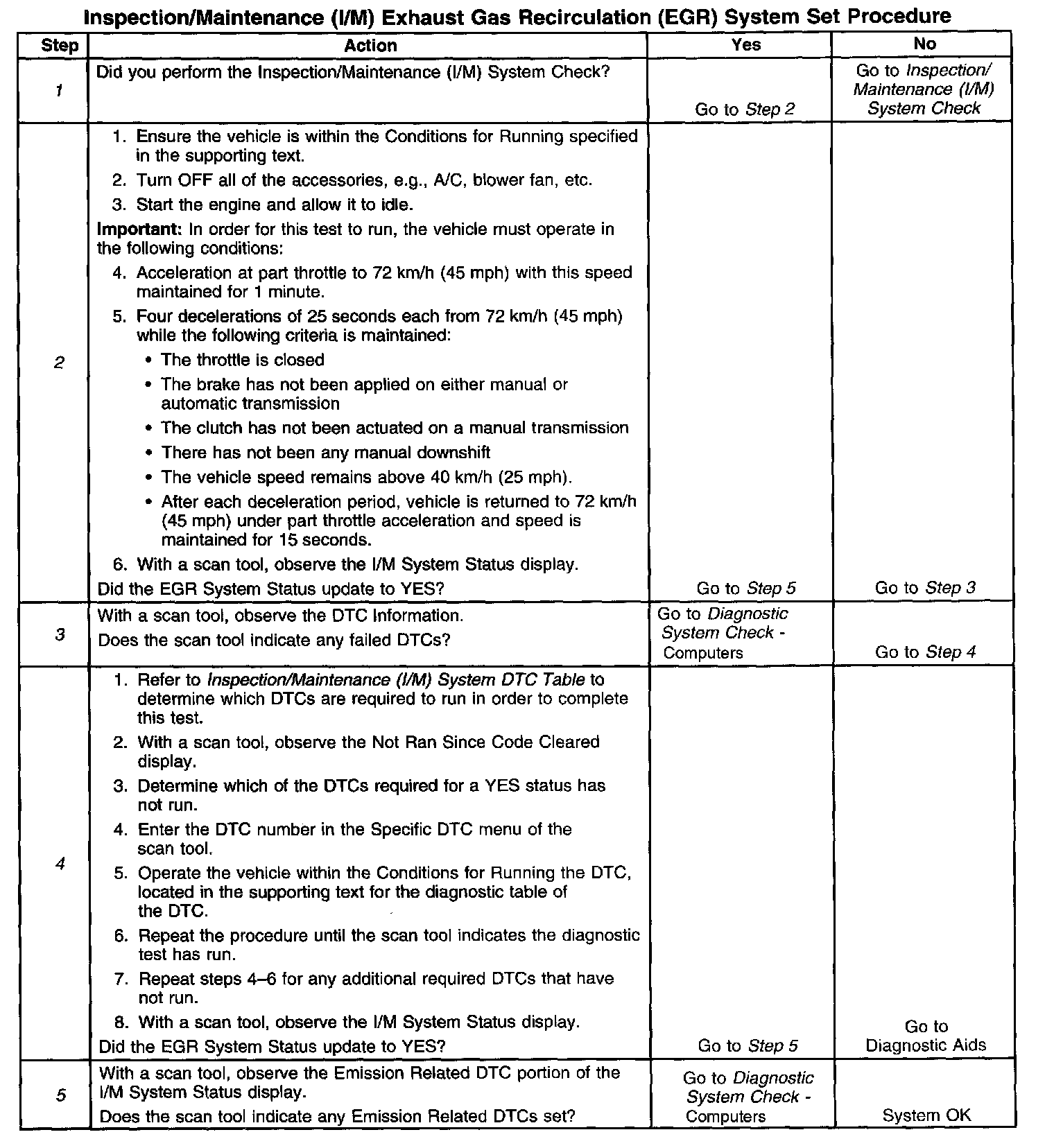 I/M Exhaust Gas Recirculation (EGR) System Set Procedure