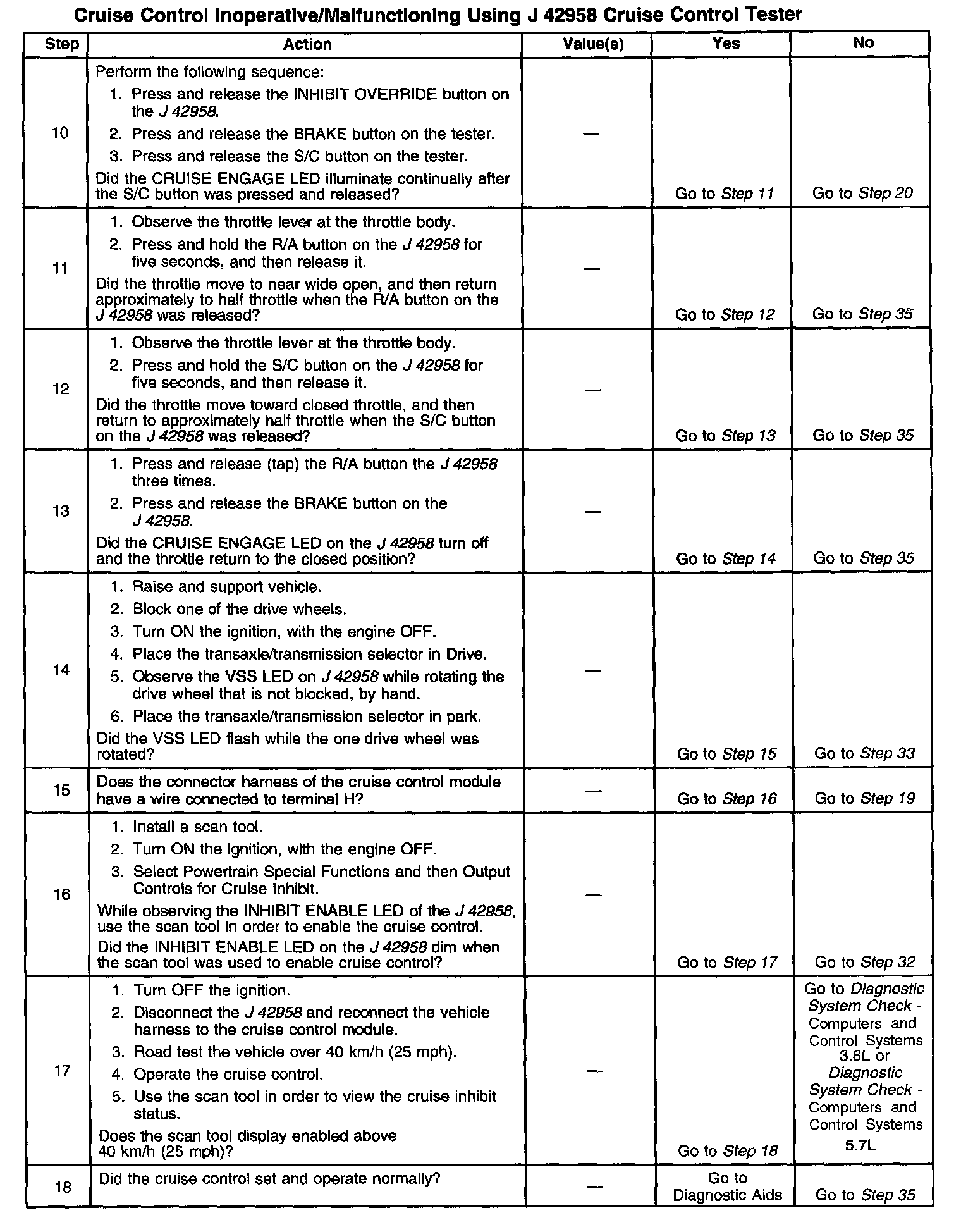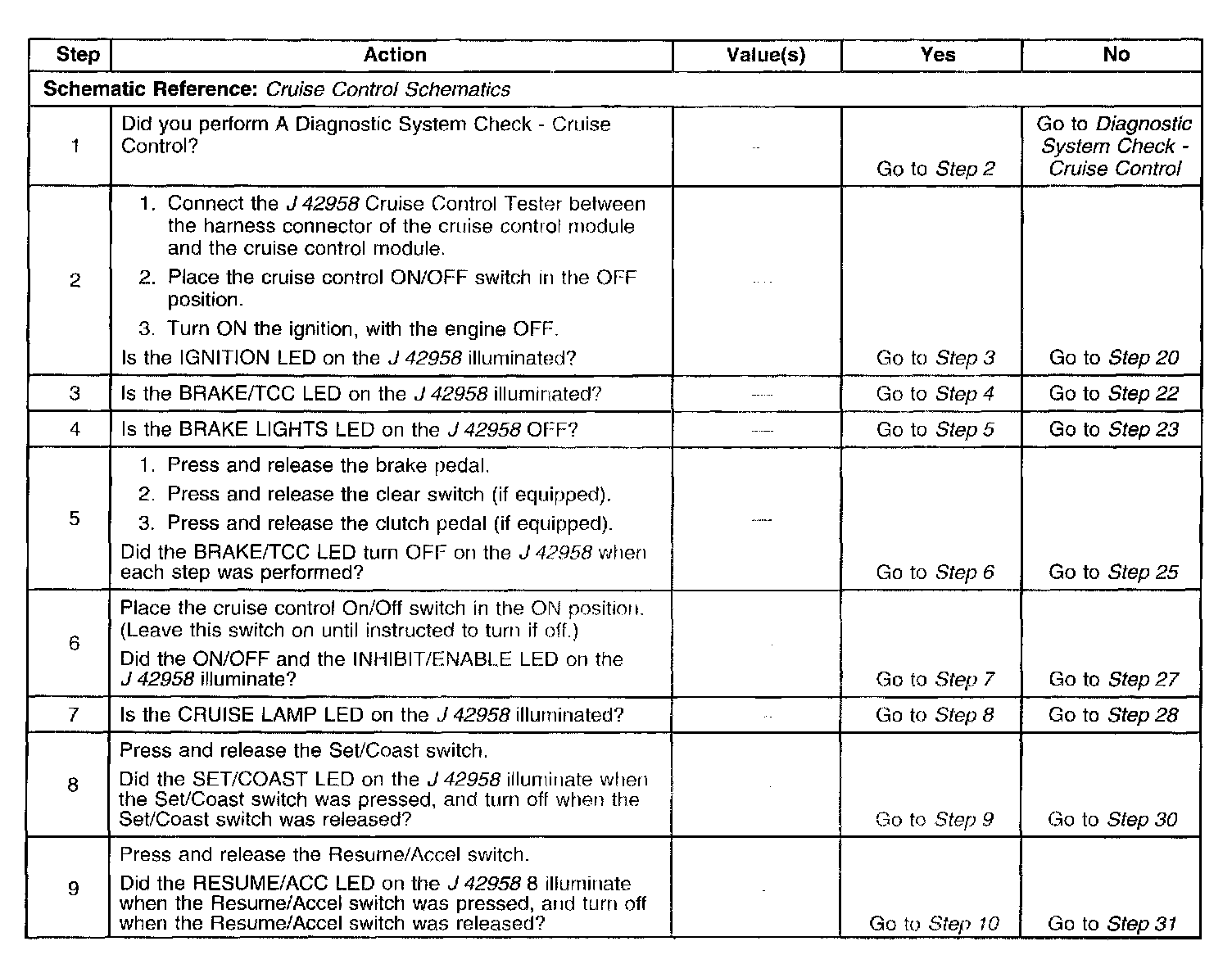 Cruise Control Inoperative/Malfunctioning Using J 42958 Cruise Control Tester
