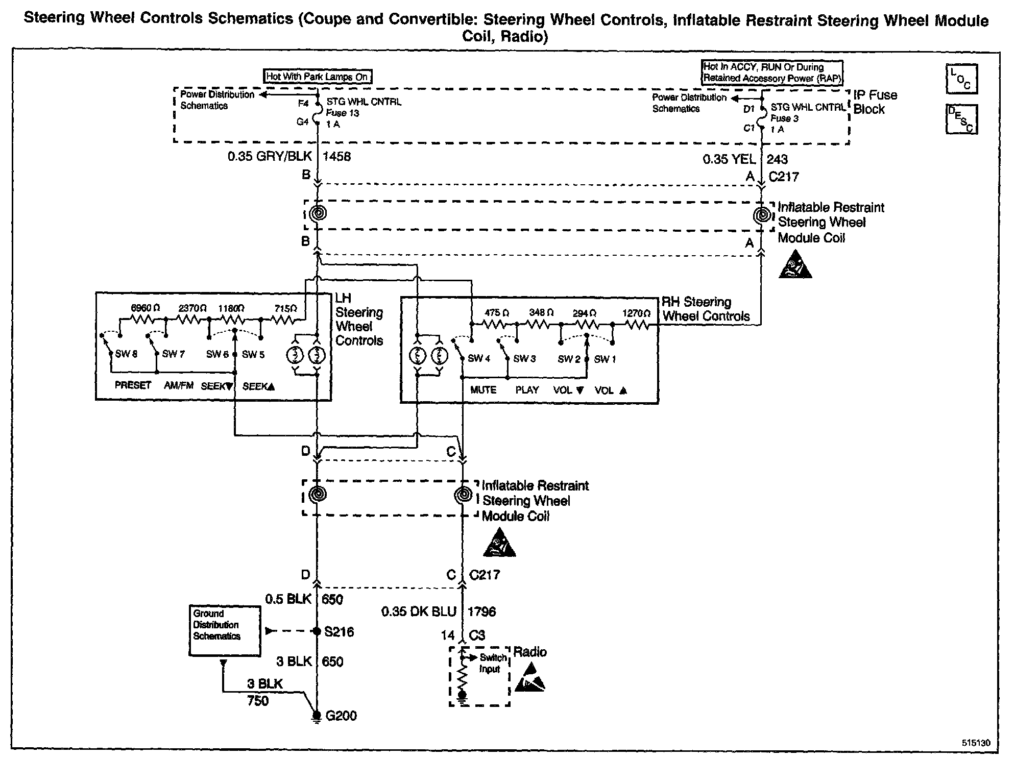 Steering Wheel Controls Schematics: Coupe And Convertible: Steering Wheel Controls, Inflatable Restraint Steering Wheel Module Coil, Radio: