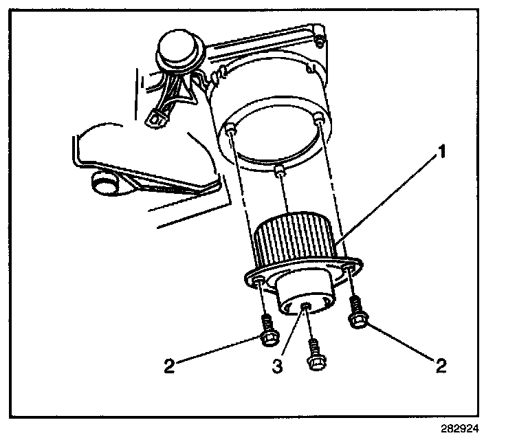 Tighten the blower motor bolts (2) to 2.3 N.m (20 lb in).