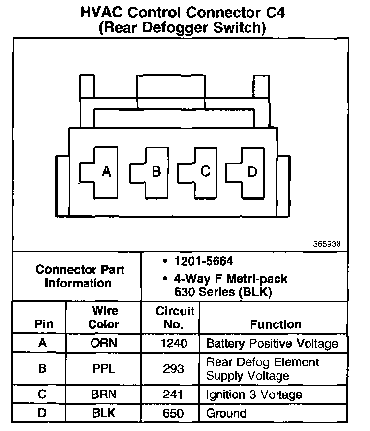 HVAC Control Connector C4 (Rear Defogger Switch):