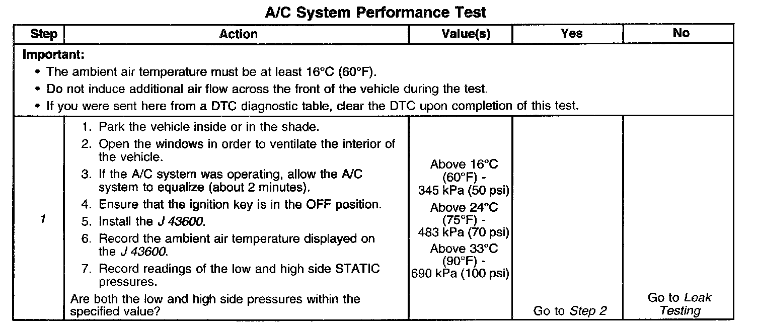 1. This step determines if there is enough refrigerant in the A/C system in order to operate the system without damage.