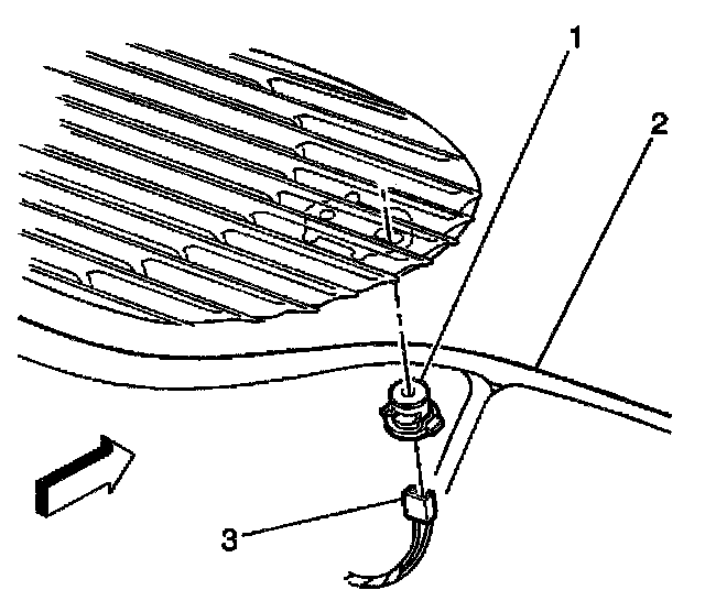 1. Connect the sensor (1) to the DRL electrical connector (3).