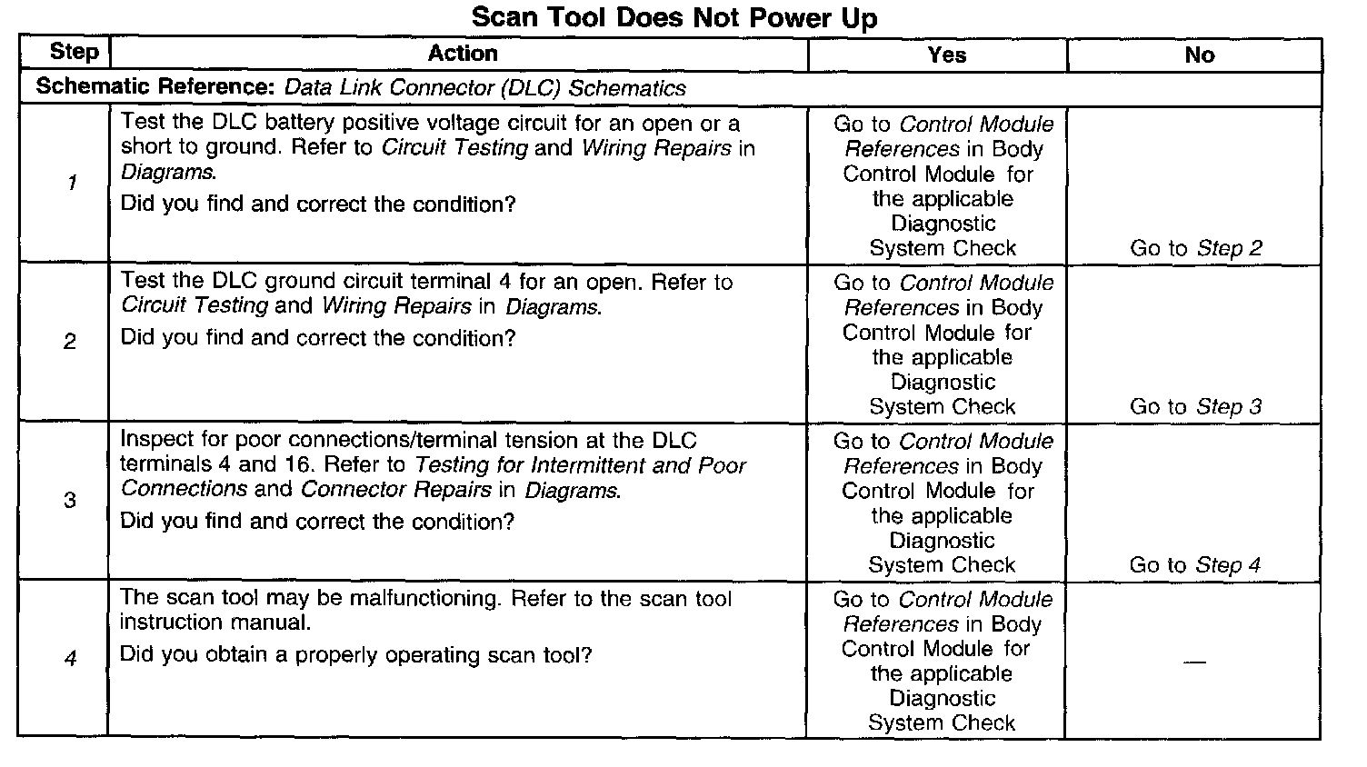 4. The DLC battery positive voltage and ground circuits are functioning properly. The malfunction must be due to the scan tool.