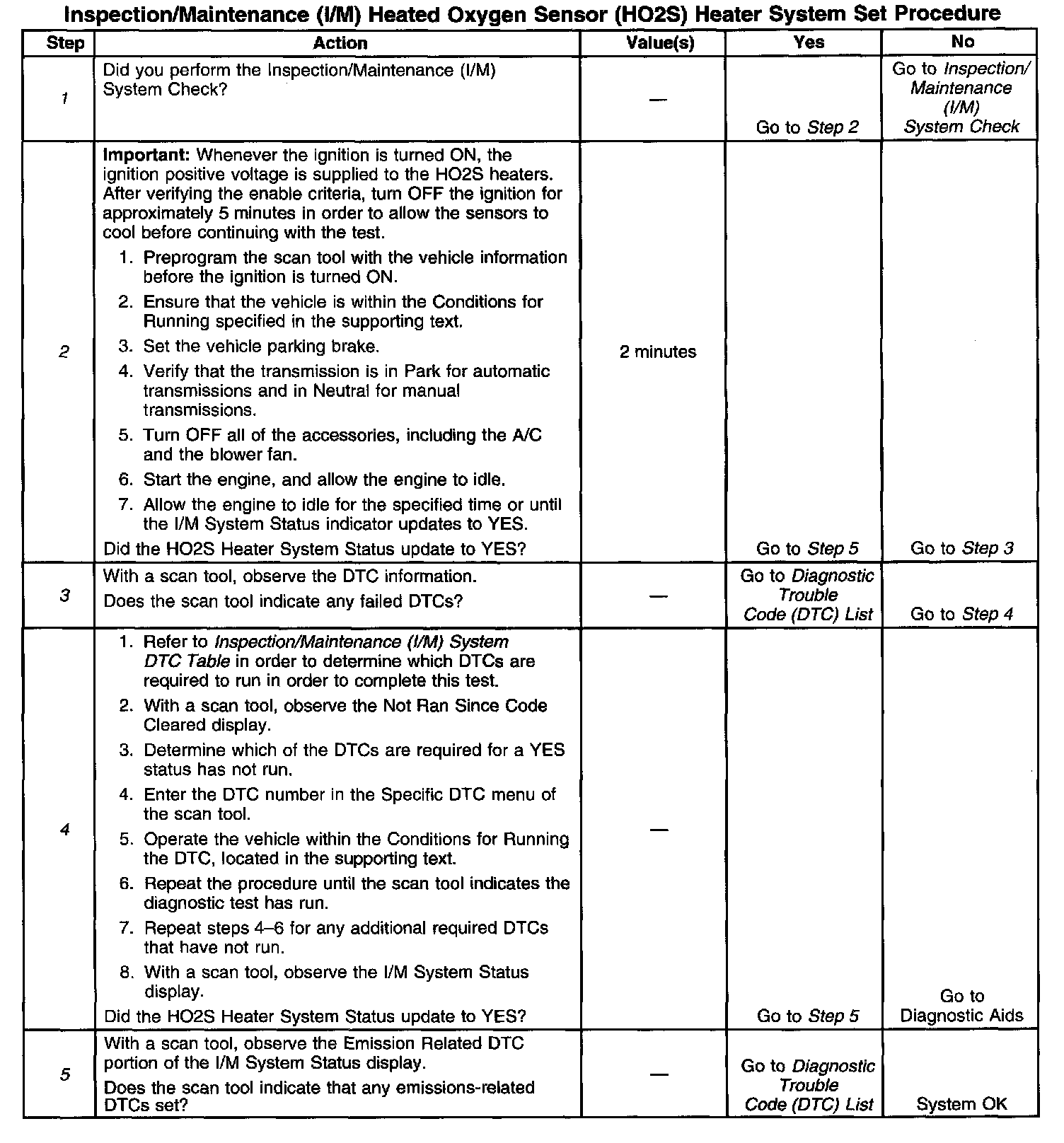 5. The I/M System Status only reports on whether a diagnostic has run, not the outcome of the test. If any emission related DTC sets after the tests are complete, the DTC will require diagnosis.