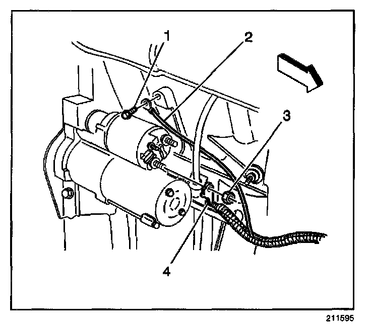 ^ Remove the positive cable nut (3) (at starter solenoid).