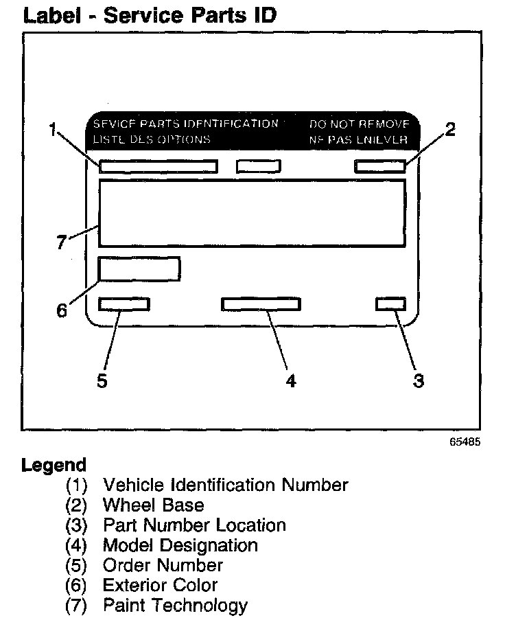 cover panel in order to help service and parts personnel identify the vehicle's original parts and the vehicle's original options.