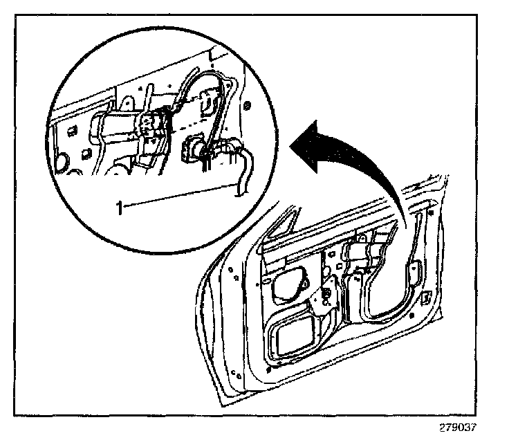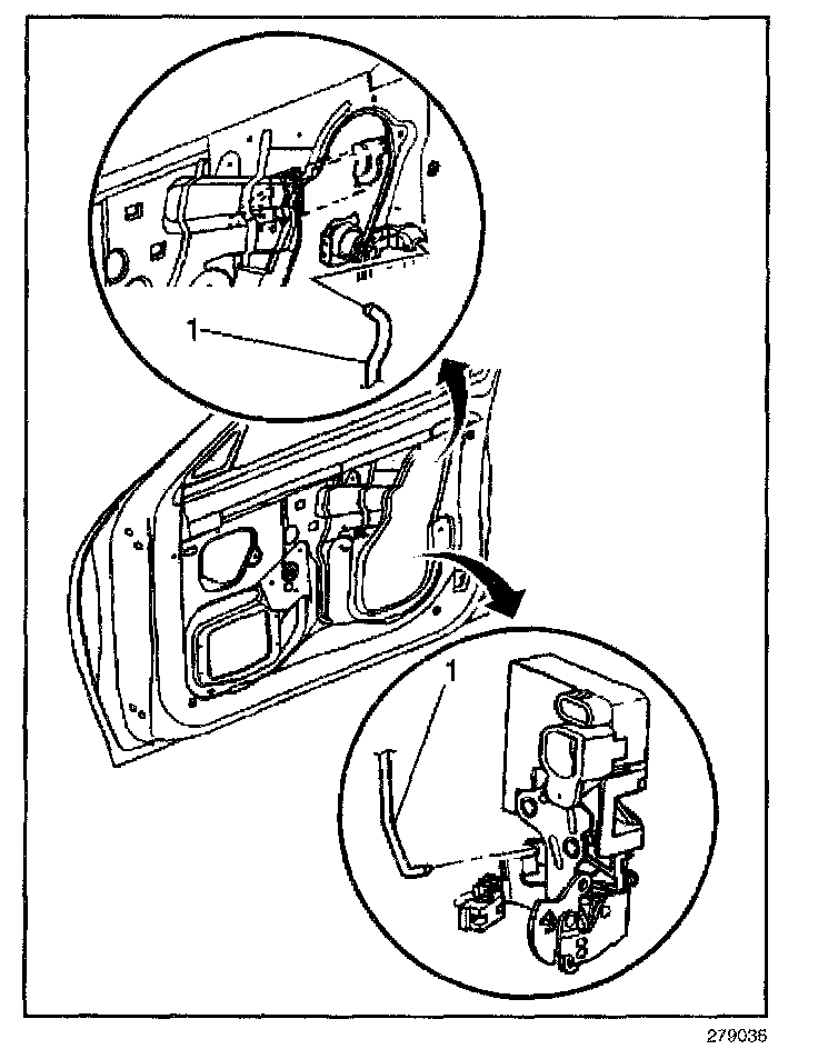 5. Pull the lock cylinder rod in order to disengage the rod (1) from the door lock assembly.