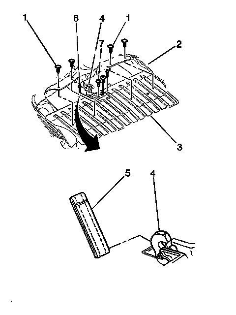 5. Disconnect the strap (5) from the rear seat back latch (4).
