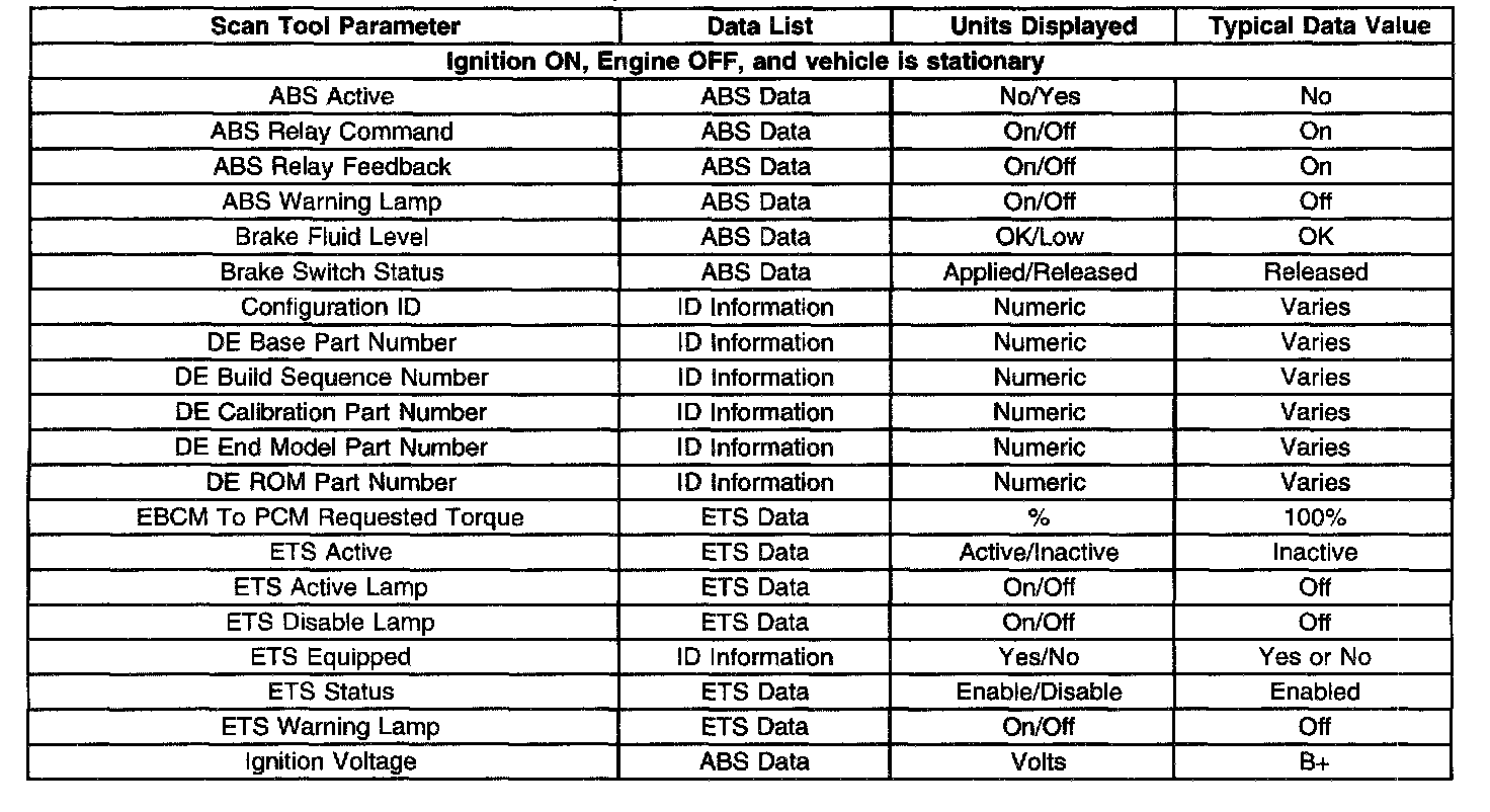 Scan Tool Data List