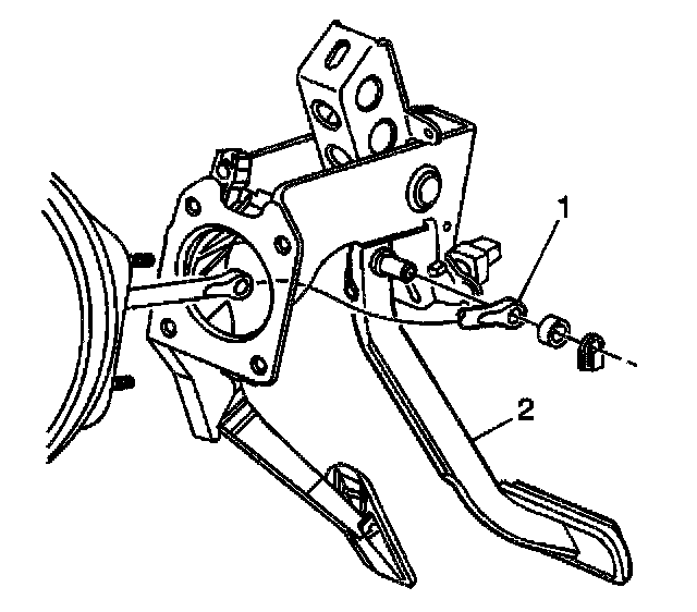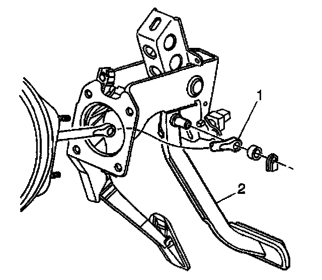 3. Disconnect the brake pedal pushrod (1) from the brake pedal (2).