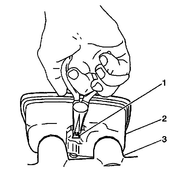 2. Disconnect the fluid level switch using needle nose pliers in order to compress the switch locking tabs (1) at the inboard side of the master cylinder.
