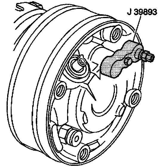 1. With the sealing washers in place, install the J 39893 on the rear head of the compressor.