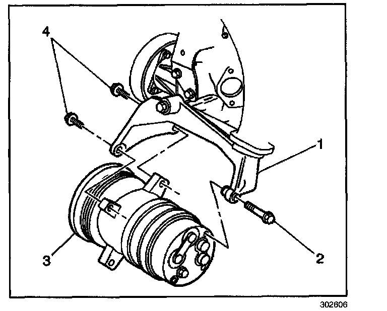 4. Install the compressor (3) to the compressor mounting bracket (1).