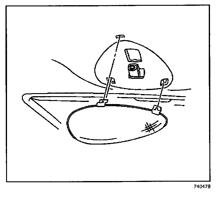 3. Insert the 2 forward tabs on the dome lamp lens into the appropriate holes in the headliner (2).