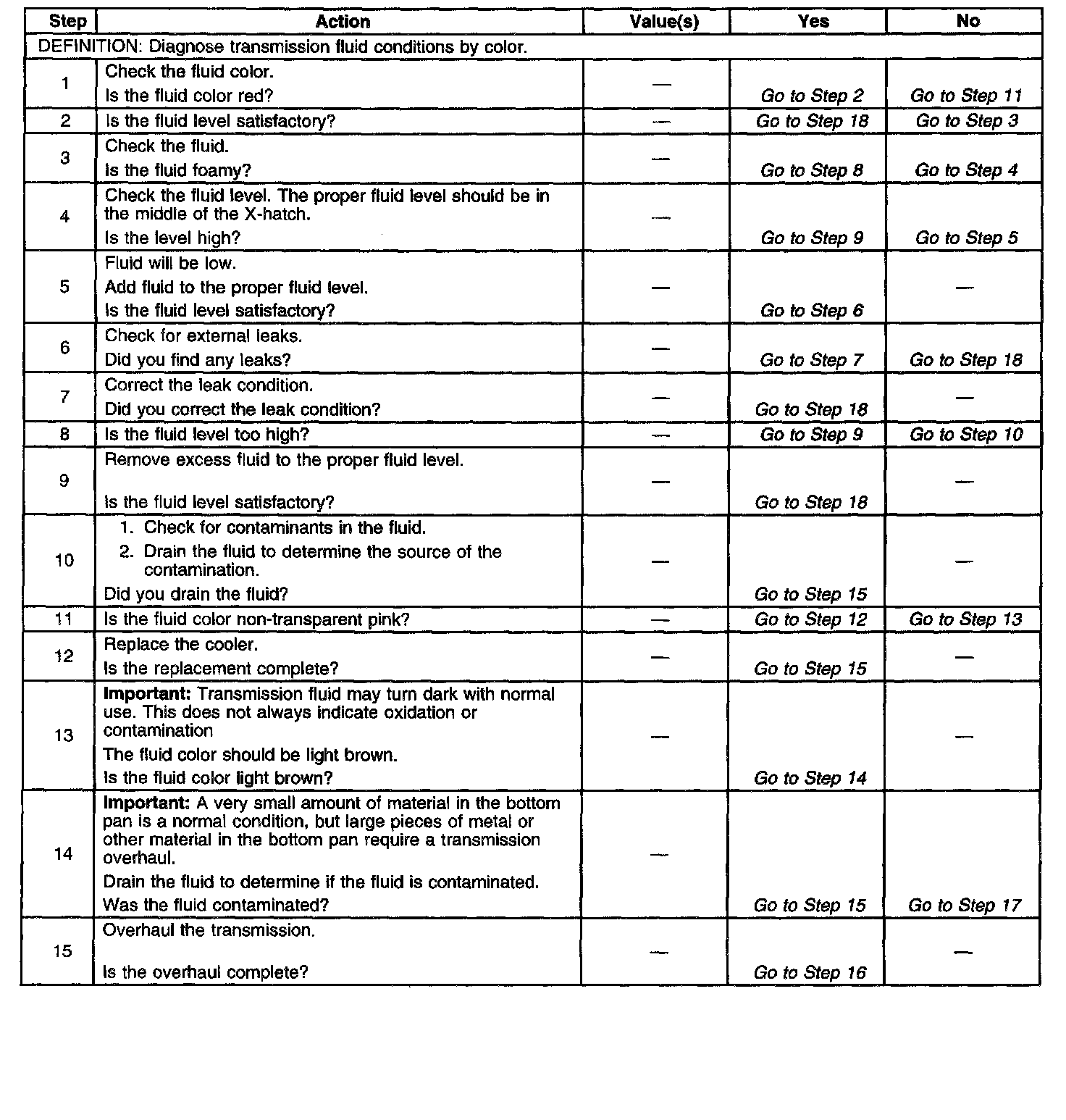Transmission Fluid Checking ProcedureTest 1-15