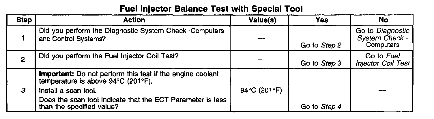 3. The engine coolant temperature must be below the operating temperature in order to avoid irregular fuel pressure readings due to hot soak fuel boiling.
